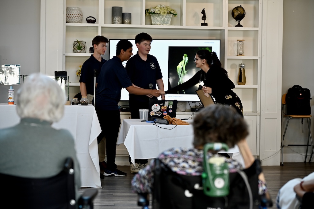 On Friday, April 10, a representative for Senator Dave Cortese, Meghan Bedi, came to Johnson’s live aquarium workshop and presentation at The Saratoga Villas in Saratoga. Bedi handed Johnson a certificate of recognition from Senator Cortese. Johnson also participated in a news segment on KTVU2 on March 27, where he was interviewed about Ivan the Angelfish.