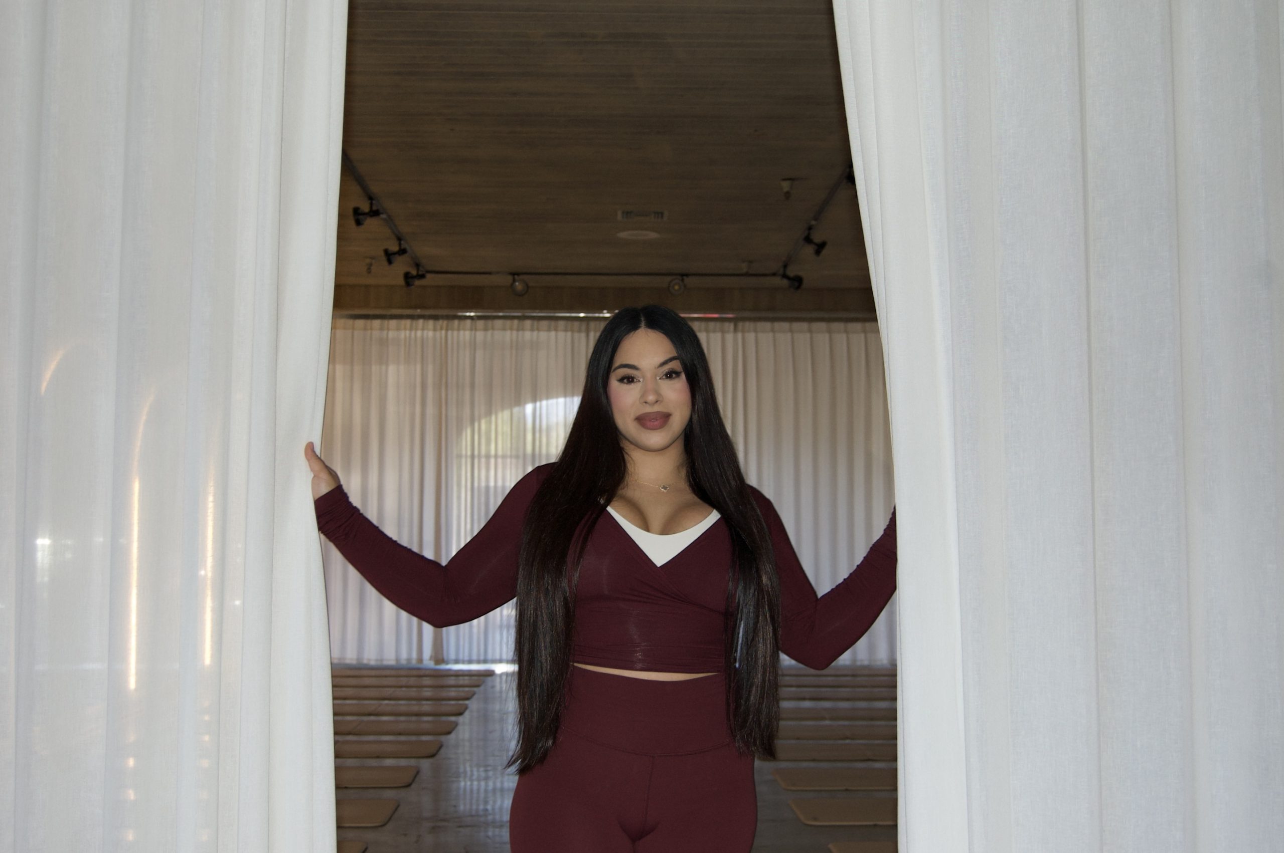 MINIMALISM – Owner of Astral Studio Stephanie Bean gets ready in her studio in downtown Los Gatos by stretching in her cool-temperature studio. (Faizi Samadani / Los Gatan)