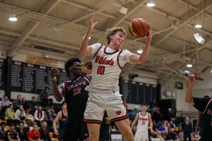 Jack Siri grabs a rebound during the Wildcats' 59-46 win over Brave Christian in a CIF State Division III regional opener on March 6. Photo by Jonathan Natividad.