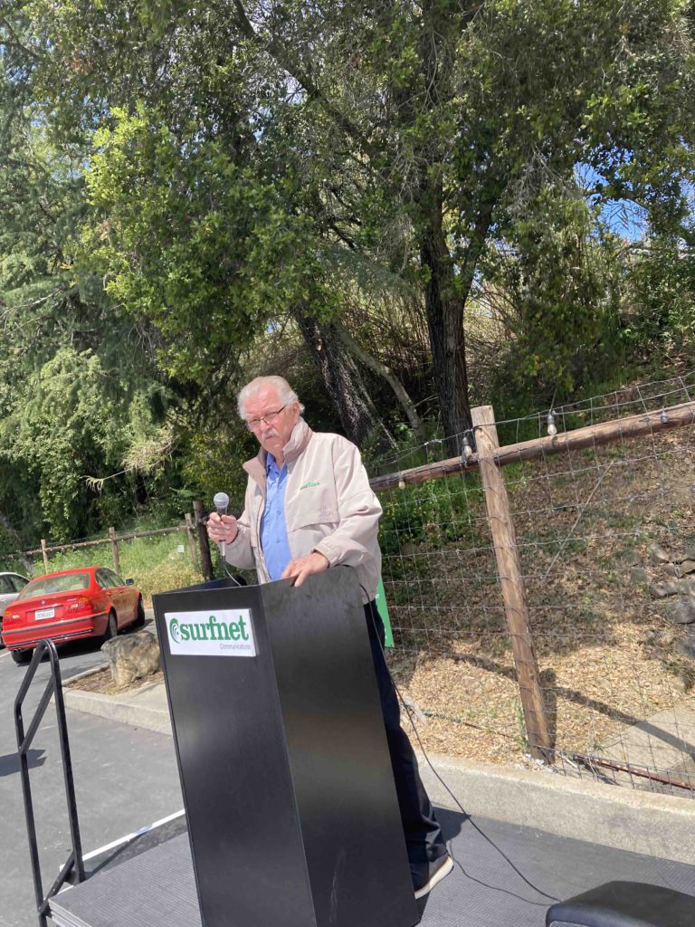 On Friday, at a midday ceremony in the Summit Store’s parking lot, in the heart of the Santa Cruz Mountains, community members joined with telecom and government officials to celebrate the completion of the first phase of Surfnet Communications’ rural internet expansion.