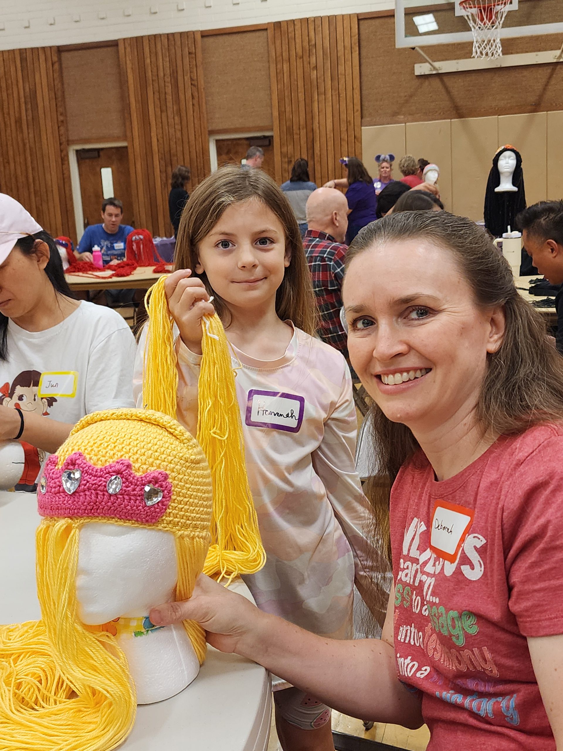With set up, meals, trainers and volunteers young and old, yarn wigs were made, styled after beloved Disney characters like Elsa, Rapunzel, Moana, Ariel, Belle and others, like Captain America.