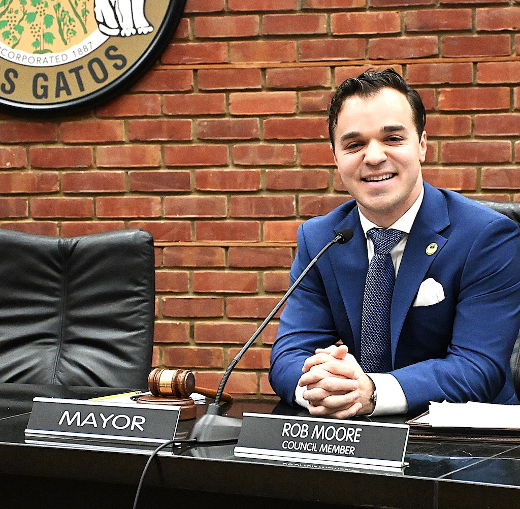 In a special meeting of the Town Council, Dec. 9, the reins of power were handed over from former mayor Matthew Hudes to Rob Moore, who, at 27, is the youngest Los Gatos mayor ever. (Brent Ventura was also 27 when he assumed the role—but was a few months older).